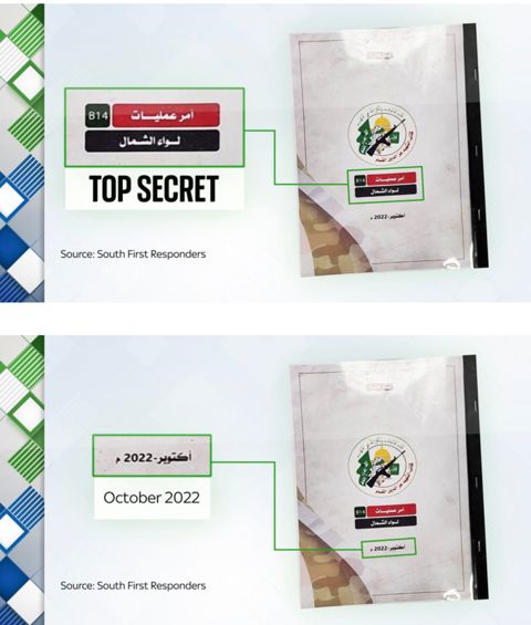 מסמך נוסף, שכותרתו "תמרון סודי ביותר", תיאר תוכנית של יחידת חמאס לאבטח את הצד המזרחי של כפר סעד, בעוד יחידה שנייה תשלוט במערב. עוד נכתב כי "הרוג כמה שיותר" ו"ללכוד בני ערובה". הוראות אחרות כללו הקפת חדר אוכל והחזקת בני ערובה.